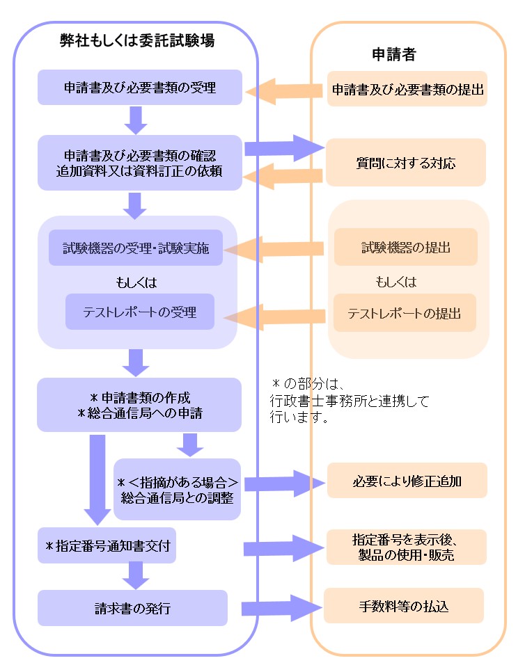 下図は一例として、型式指定取得までの主な業務の流れを示しております、まずはメールもしくはお電話にてお問い合わせください。